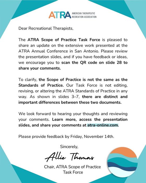 The ATRA Scope of Practice Task Force is pleased to share an update on the extensive work presented at ATRA San Antonio. Please review the presentation slides, and if you have feedback or ideas, we encourage you to complete the feedback survey.