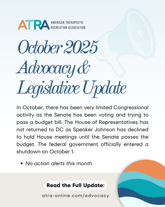Learn moreATRA advocates for you! ATRA is devoted to promoting and supporting the recreational therapy profession through our strategic advocacy efforts, which ensure that lawmakers and other influential organizations are aware of recreational therapy’s vital services. Learn more and get involved!