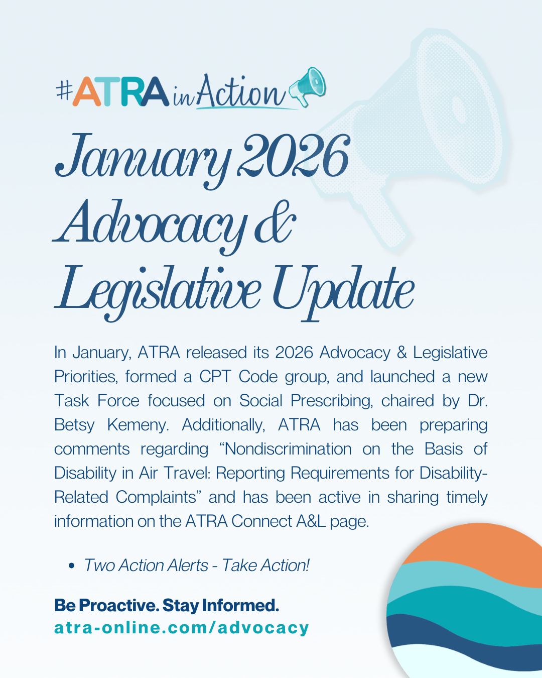ATRA advocates for the recognition and inclusion of RT at the federal level, provides advocacy updates, and offers a variety of actionable tools and resources for professional advocacy.