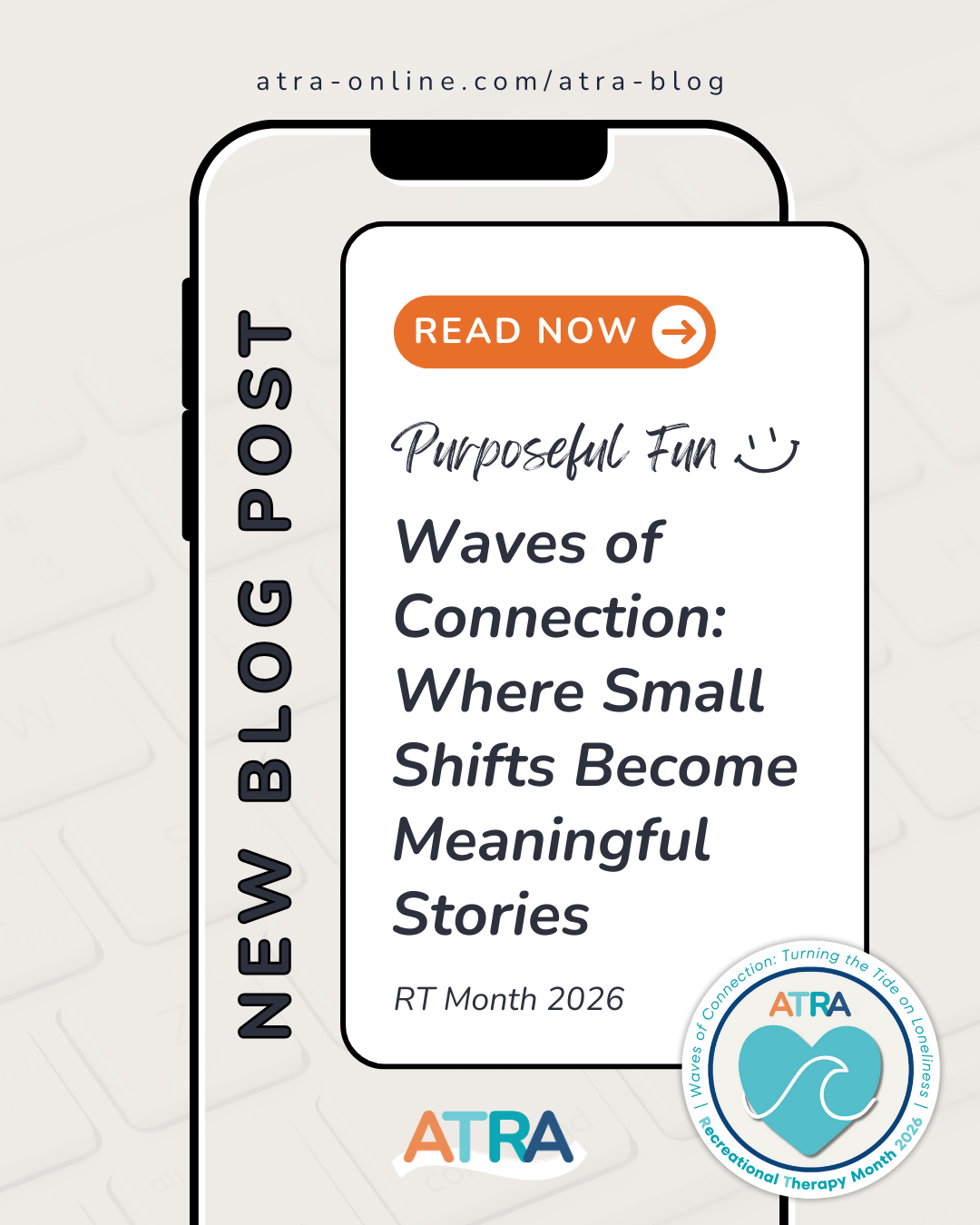 Please join ATRA in emphasizing Recreational Therapy’s essential role in promoting social connectedness during RT Month 2026! Let’s celebrate the unique expertise that makes Recreational Therapy such a powerful resource for social health in our communities and healthcare systems. ATRA is here to empower you during #RTMonth2026 with advocacy resources, opportunities, merch, and giveaways!